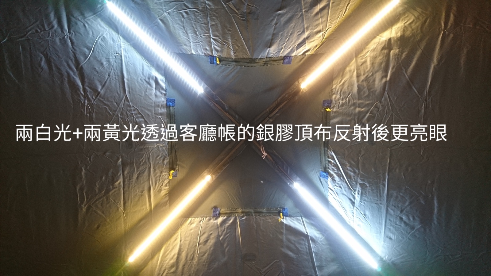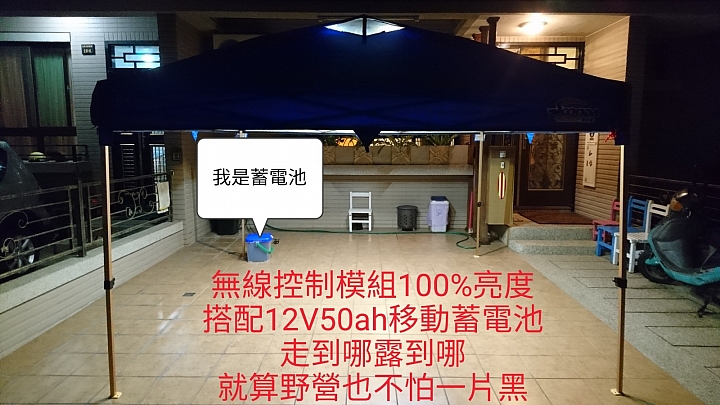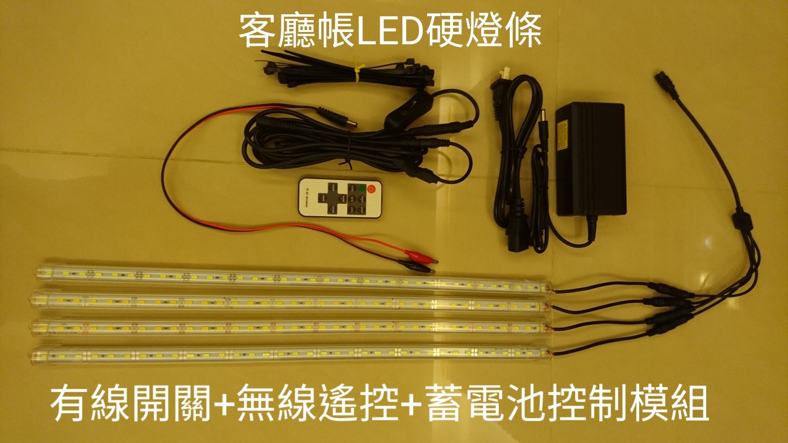 燈具一直在進化,最近因為換了客廳帳,順便在拍賣網站買了客廳帳的LED硬燈條組,來與客廳帳結合,在這之前我是買LED12M的軟燈條來照明,每次收線都盤燈條盤到手軟,這次用的LED硬燈條組可以110V+12V+無線遙控+有線開關,這種配置幾乎所有的有電營地.無電營地及野營都可以玩了,真是佩服發明跟改良這玩意的露營前輩們。