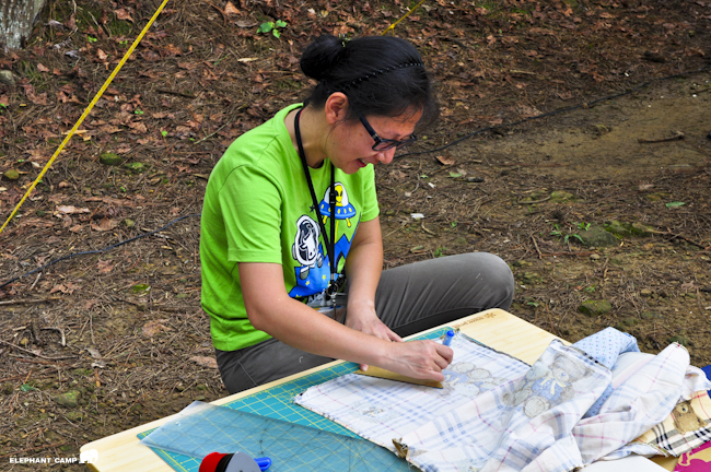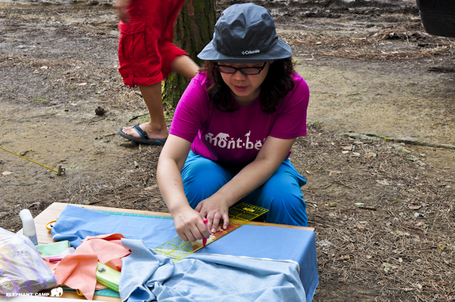 早上九點~繽紛三角旗DIY課程開課囉,各家將準備的花布一起在松樹下DIY