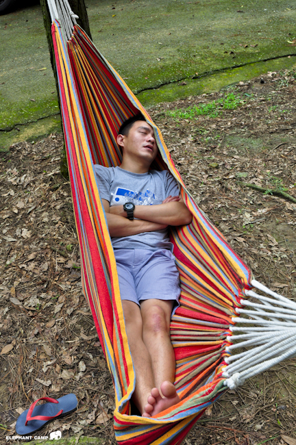 這位JOE跑到吊床上補眠中~不吵你了,希望你下午的演出順利囉~