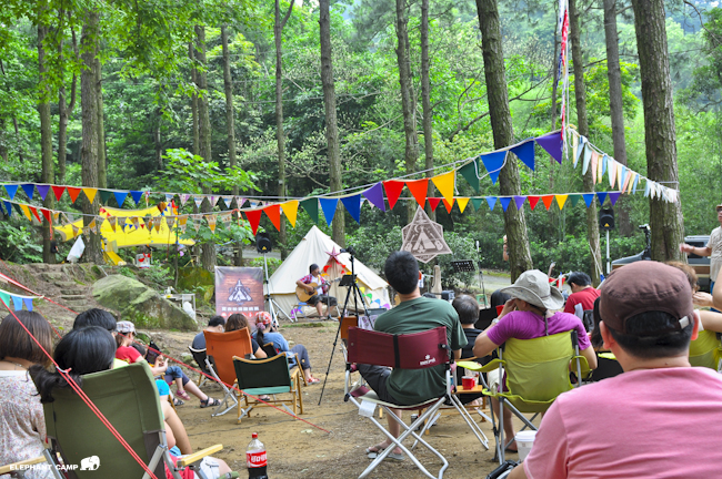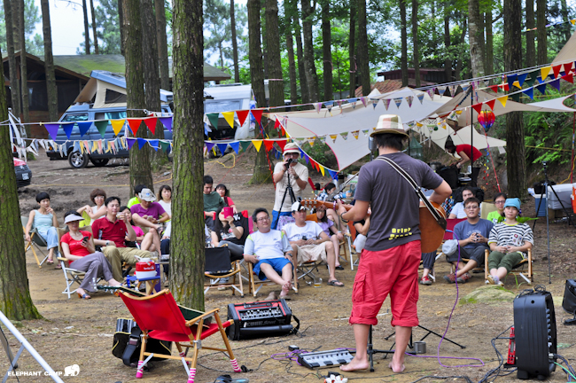 這時觀眾已經拿著椅子帶著啤酒在台下排排坐好囉~準備迎接這一場樹林間的音樂會~