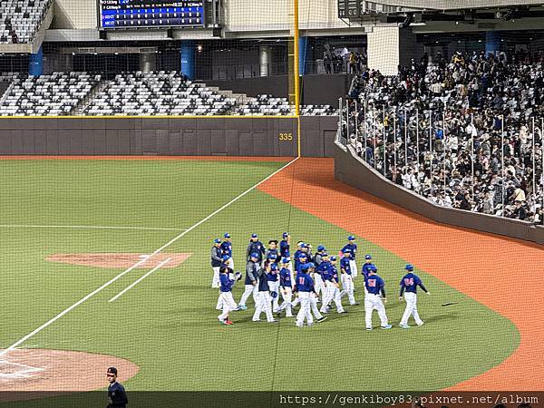 這次先寫結論好了,首先用四個字來形容這次的觀賽體驗“冷涼卡好”,坐完一整場,空調真的是有冷到!不知道是不是因為還沒開放全場入座,所以空調還非常有餘裕,吹到會冷,回想起剛看完不久的台灣大賽看得我滿頭大汗,這次在室內看球則是冷到要穿厚外套跟拿出暖暖包!通常我都只在季初跟季末進場看球,因為季中真的太熱了............如果在夏天也有這樣的冷度應該是很有吸引力的啊XD