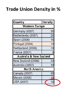 所以整體來說 , 美國勞方加入工會比例只有十幾趴而已 , 而且其中不少是 警察 教師等