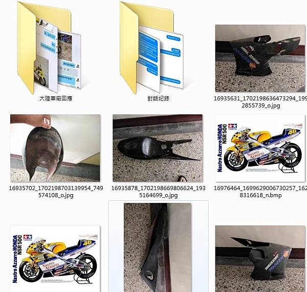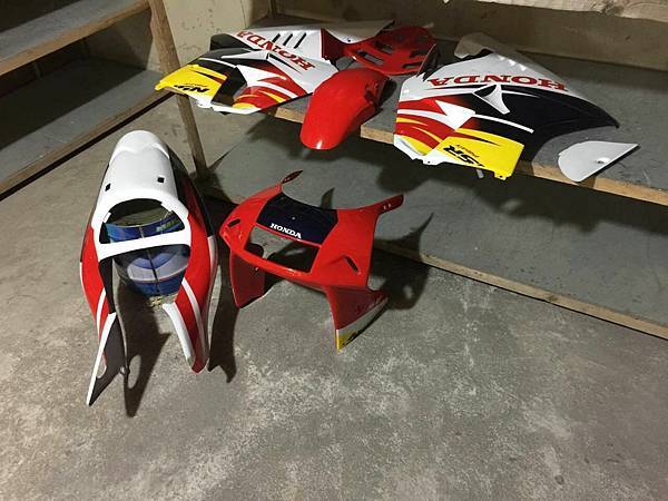其實當初朋友是只有單獨幫我個人做NSR150台N車殼翻新加上RR配色,因為一則分享文,讓許多車友(連FZR和R1車友都)傳訊息來洽詢,更沒有想到玻璃纖維在大陸是早就淘汰的車殼材料,但我已經答應這兩位車友,雖然沒有跟車友肯定這案子一定會接案,但是這幾天和車友在訊息間,我看他們對這次能把車殼翻新而且重點是塗裝上他們心中希望的配色(一位指定NSR250 SE配色,另一位難度比較高,只給我一張"田宮模型"盒子正面翻拍照片,就要塗裝成盒子上面的廠車配色),我看到兩位在言談間對於這次殼過去整新的期待感和積極溝通甚至已經準備裝箱的悸動,要我轉達這CASE大陸方面可能無法承接,我想肯定不只是失望,搞不好會認為大陸根本連玻璃纖維修復都搞不定吧~!
