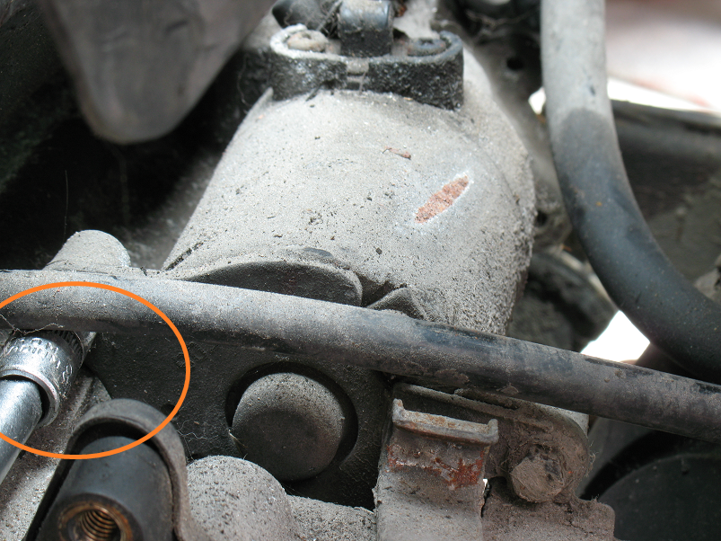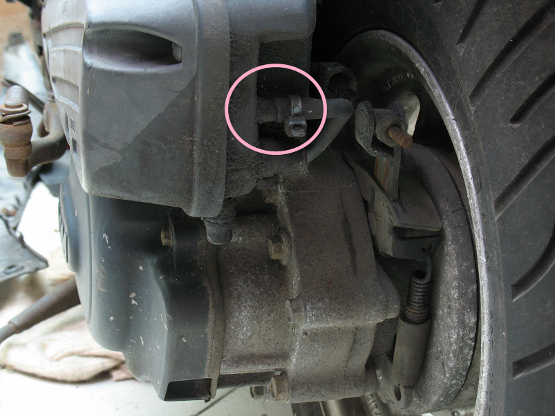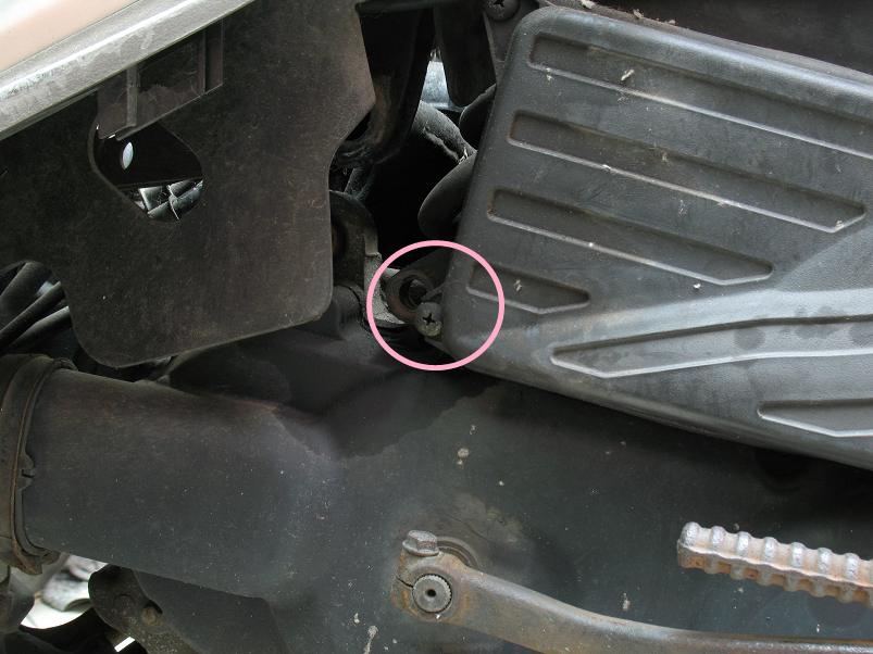 拆下空濾就可看到固定啟動馬的兩顆螺絲…但還是被剎車線導片檔住