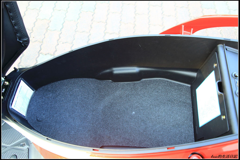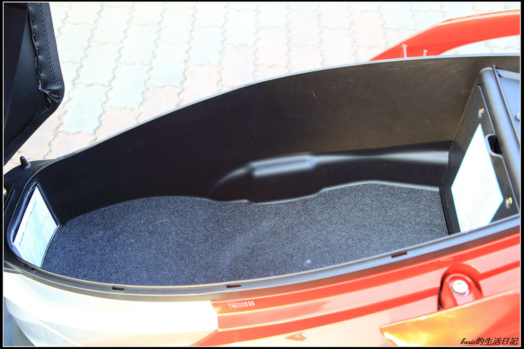 前方的置物空間 , 可以輕易放入飲料杯 , 就算是1000cc的都ok , 且深度夠深 , 不會容易跳車 , 便利性大增