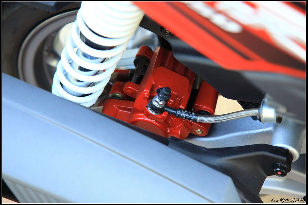 後輪也是碟煞 , 而且採取外卡鉗 , 維修保養較方便..