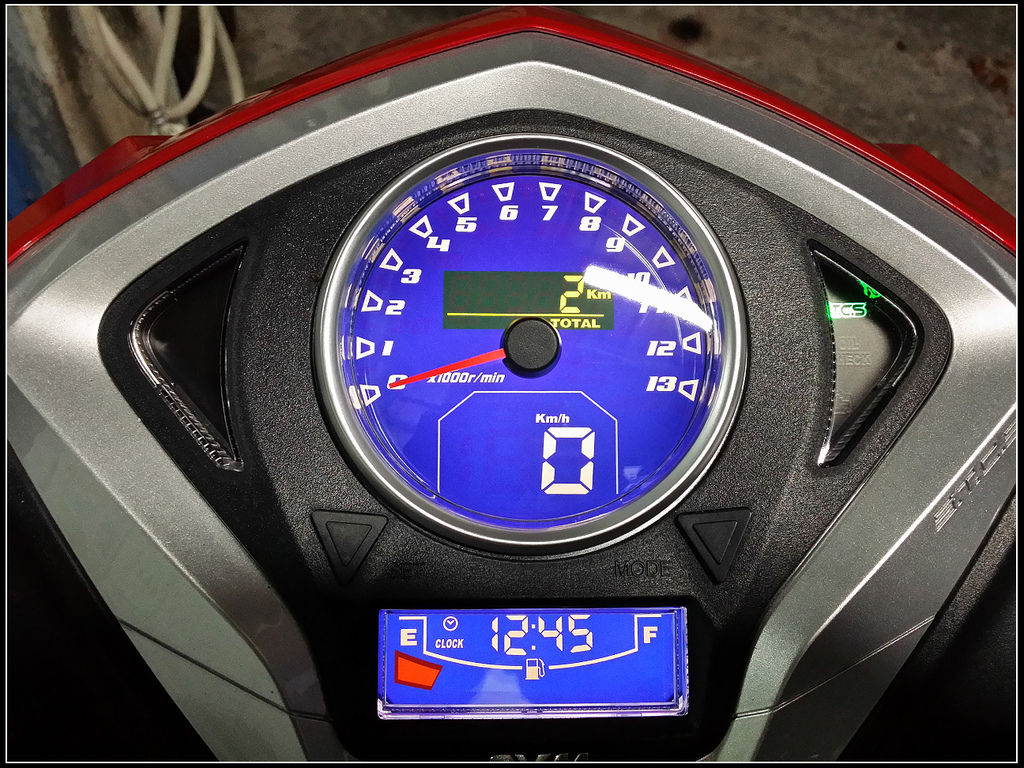 有注意到旁邊有個綠色的S.T.C.S燈號 , 亮起的時候代表可省油 , 節能 , 暗掉時代表輸出較大的動力(相對就沒那麼省油)