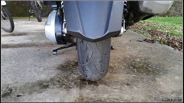 沒想到原廠胎才7200就掛了..呵 , 可見M6029真的算是運動胎 , 平常騎起來覺得抓力也還OK , 只是雨天真的就蠻滑的 , 絕對不要有較大一點的傾角..