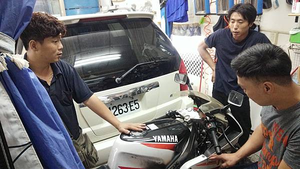 沒想到6/30號下午,這許先生還真的一通電話打來,說著說著就把車子騎來我店裡了!一直到深夜,阿吉師下班後趕來店裡會合,和許先生一起討論與評估其愛車該如何下手整理與了解個人預算等等大綱討論。