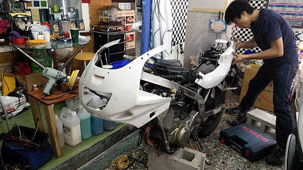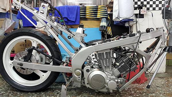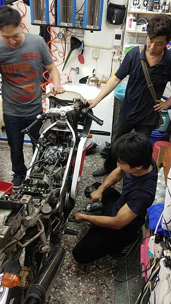 首肯之後,緊急商情了我的好兄弟昌兄,與台中當年機車界相當知名的阿弟仔天才修車能人進駐繼續完成這輛不算簡單的整備工程。