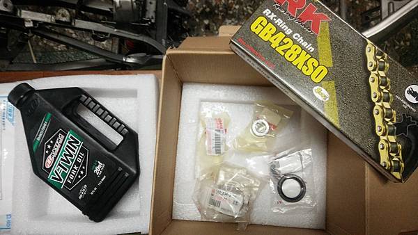 珠碗也需要一次性更新(又要找料了......),另外像前叉漏油,排氣管破裂,鍊條不堪使用,引擎內油封,引擎類重要零組件小東西.....