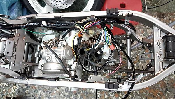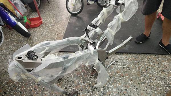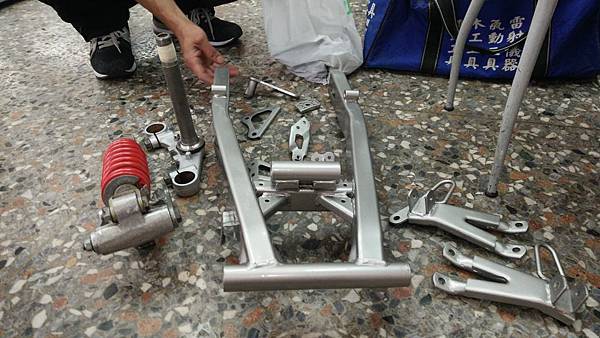 而整備操刀的阿弟仔師傅也沒閒著~陸續也將前叉,車台,引擎整理兼兩側外蓋,汽缸,車體以外(除殼)
