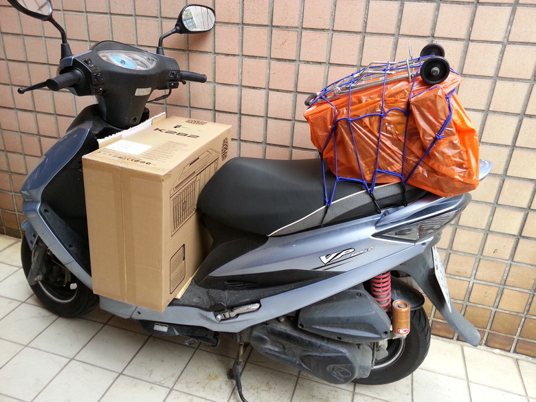 另外,一部帶紙箱的桌上型電腦主機要綁後貨架載送!