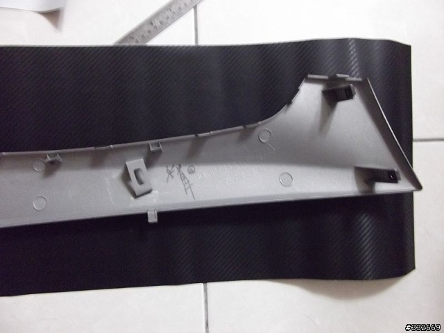 車頭內側下方二顆星狀螺絲、車邊殼尾部一顆星狀螺絲,都是用T25星狀起子拆卸。SMAX的車邊殼是上緣(踏板平台)邊有卡榫,車邊殼下緣只有二個支點。所以拆掉螺絲後,將車邊殼上緣往外拉即可拆下。我只找到當初包碳纖貼紙的部分照片,這是左邊車邊殼的背面,您可參考一下。下緣那個突出就是支點之一,看螺絲鎖牙片位置,您應該很好比對輪拱內鎖殼螺絲的位置。