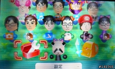 tequila01 wrote:那個紫色牛角的我也有...(恕刪) 紫色牛角是破關後得到的道具,所以我看到有一些人有紫色牛角的,我只有瑪利歐帽和貓耳而已一開始我是用正常mii人形的,之後就想弄個熊猫的mii來試試,想不到辨視度還不錯,之後弄別的來看看好了。不過有個問題,如果我改變了mii人形,已經擦身過的人會一起更新嗎?還是就固定是擦身的當時人形,有機會研究一下。樓上你是Raaaaaaaaaandy嗎?你拼圖還沒開喔!?本來我也想買美版機的,不過弄回來居然比日機還貴,再加上有些遊戲不出美版的,想一想就買了日版了。