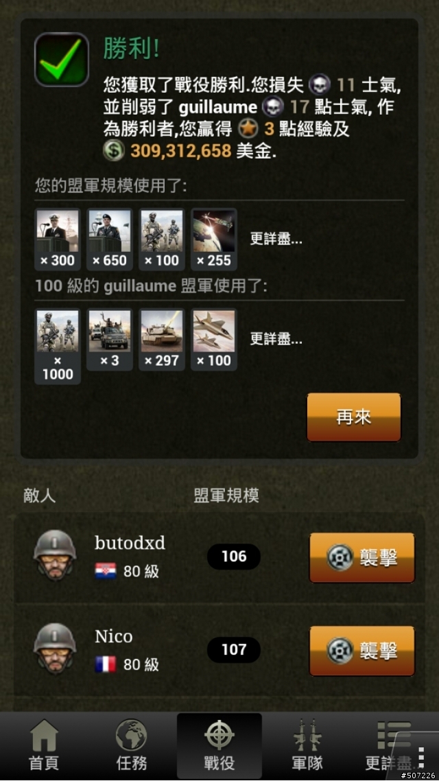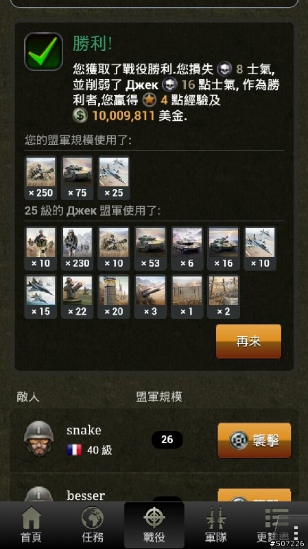 儘量挑有戰利品的任務做, 有機會獲得攻擊力較高的軍隊