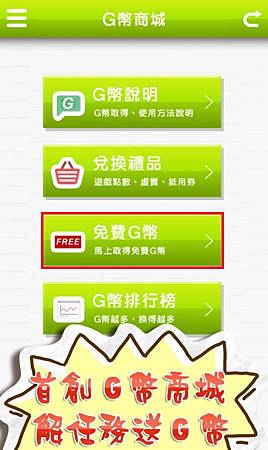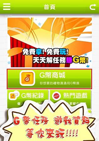 不只是下載執行任務,每天簽到也可獲得G幣喔!