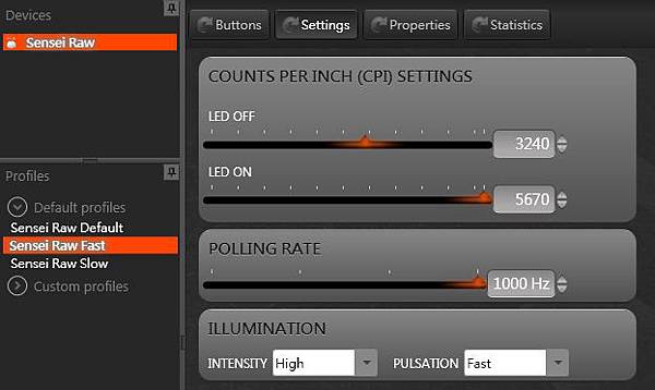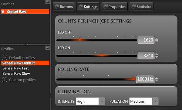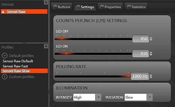 可自定義CPI的速度,範圍從90-5700,你也可以選擇下方的預設profile,他也是未裝SSE的預設設定