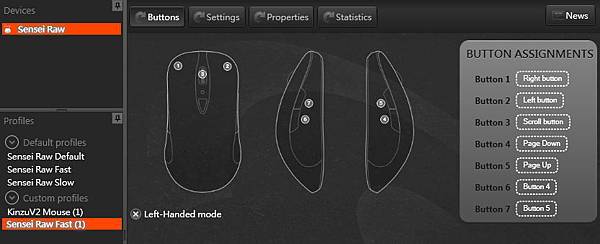 SENSEI RAW的外型與XAI. SENSEI相似,我對於這款大小相當滿意,本人就是愛用大弧度滑鼠,鼠背越弓起我越喜歡,用龍爪握法輕鬆不少,但雖然大小與XAI&SENSEI相同,重量卻輕了不少,原因是SENSEI RAW沒有LCD可顯示資訊,但我真的也沒機會看背後的LCD,所以真的沒差