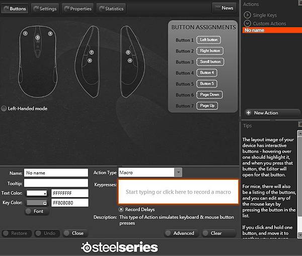 他最大的賣點,就是有獨立四顆快捷鍵,讓你可以自行錄製巨集,巨集的功能則類似按鍵精靈一樣 ,錄好之後單鍵執行一連串動作