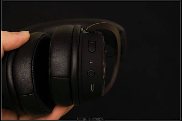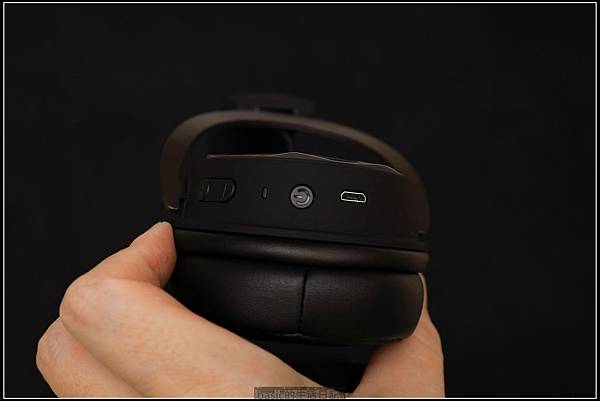 在耳機的本體上也設有可以簡單操作的按鈕,電源鍵與音量控制,充電孔在一邊