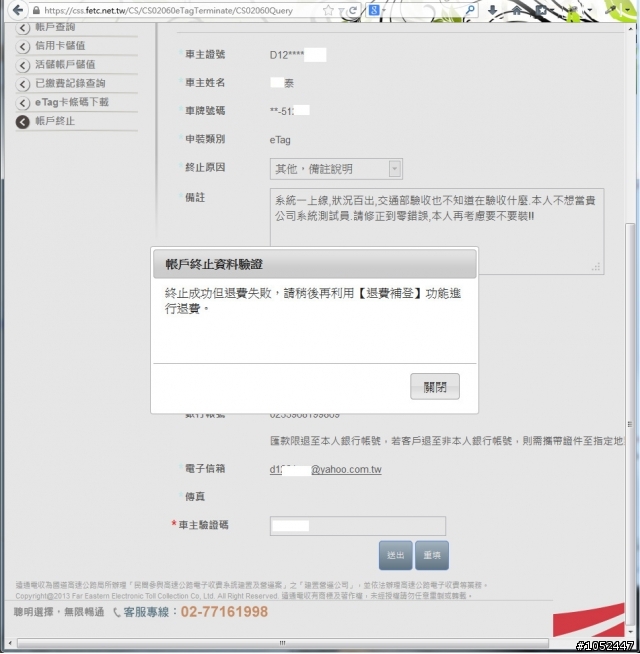 剛剛看完版大的介紹文,馬上上網辦理!下班回家馬上把etag撕掉~本身對遠通就沒有好感,當初要不是看在通行費有優惠的份上,也不可能去裝。現在得知沒裝也可以有相同優惠,那我幹嘛還貼個貼紙在擋風玻璃上給你多扣錢!!