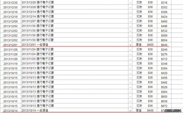 左岸@&右岸 wrote:台新與遠通~~不是說...(恕刪) 你貼的明細看不出來哪裡不正常內26號剩下148元你27號繼續過ETC148-36=112低於120圓所以28號幫你自動儲值400圓,很合理呀等到400圓儲值進去後,29號再針對你27號過的收費站做扣款有問題嗎ralse wrote:偷偷來被抓包了遠...(恕刪) 沒有偷偷來,每個用戶都是這樣,當天通過的後天才會請款但是當天通過低於120圓,在隔天就會進行自動扣款,確定第三天有足夠金額扣款是樓主誤會