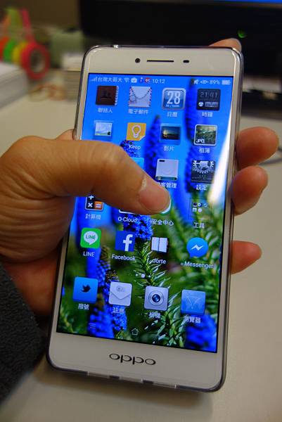 我不確定是因為我拿的是試用機?或是OPPO出廠的每支手機都貼了螢幕保護貼?總之,對我來說這是非常的方便,因為我習慣把手機就丟在口袋中,難免會和其他雜物碰撞,貼了保護貼讓人安心不少。(仔細看,接近螢幕的邊綠,有一條細細的線,看起來是已經貼了螢幕保護貼。)