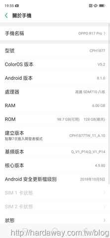 R17 Pro的SIM卡槽,是採用正反兩面設計,但沒有支援microSD記憶卡,因此手機容量就無法擴充了。