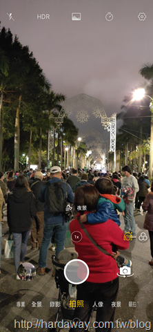 OPPO手機照相介面一向簡潔,以大多數拍照時使用的拍照模式,可以直接在畫面上快速選擇使用HDR、美顏選項,以及1x/2x變焦切換拍照。