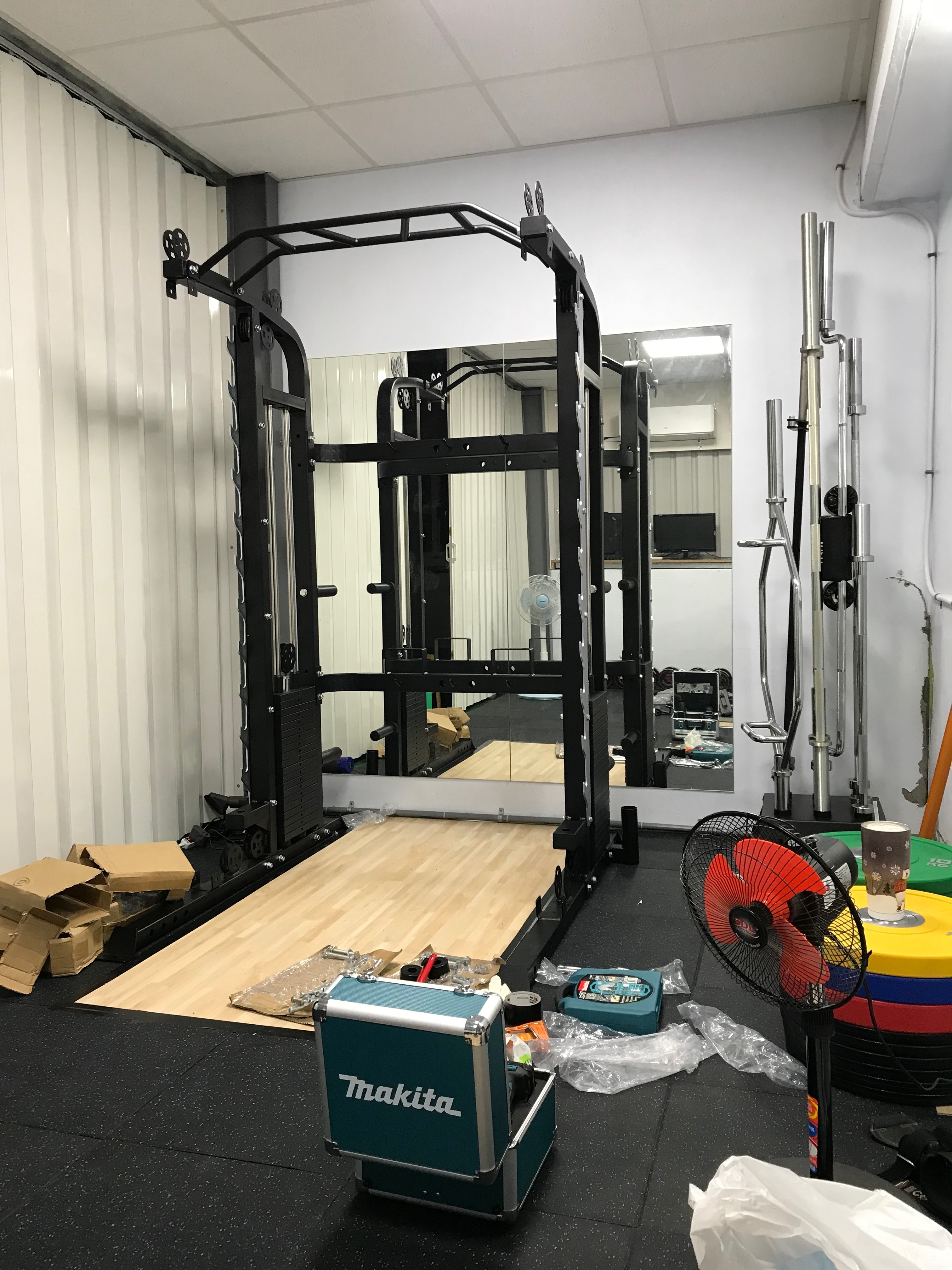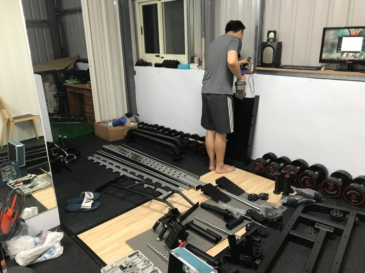 前言:各位前輩巨巨好,一路拜讀轟菌樓中各類開箱文,終於有機會分享我的home gym2.0,沒意外應該沒有3.0,因為再upgrade下去不是跪算盤能解決的事😅….跟大多轟菌初心者一樣,爬完轟菌樓後,購入台北健身器材廠Rak半框、迪卡農50kg槓鈴組以及自行掏寶的U50及MFIT臥推椅,就這樣認真訓練一陣子,但內心蠢蠢欲動的惡魔一直長大….所以開始著手策畫,我的方式是先到國內外一些健力、健美體明星youtube上看大量影片(大H、蓋依、館長、短腿小蘿蔔、健助師小柯、ATHLEAN-X's、Bodybuilding.com、Jeff Nippard以及國外IFBB PRO選手都怎麼鍛鍊),因為前後只有一年到健身房及簡易轟菌訓練經驗,對一些動作及器材都還懵懵懂懂,所以如果您跟我一樣經驗不足,建議先大量看影片,胸背腿手臂核心等以及健力三項要領才會知道自己要什麼,適合什麼訓練。我的轟菌是建置在頂樓加蓋鐵皮(倉庫晒衣間中),因為挑高五米且場地過大(考量冷氣出力問題),所以在器材進來之前先設置了活動拉門,輕鋼架將場地隔好後再加裝冷氣,其中因為輕鋼架數量太少加上頂樓施工材料搬運問題,光是找到願意施工不漫天開高價的廠商就費了一番功夫(先感謝我老弟好友,鋼構廠俊傑兄),另外請附近玻璃行(新裕興玻璃)施工貼了三片大鏡,師傅施工技術非常高明;接著就等地墊及設備入場,以下是設備清單。台北健身器材廠 - Rak G6史密斯訓練框(含飛鳥靠腰)、美鷹槓鈴片、鐵牛啞鈴、三層啞鈴架、滿天星地墊、六角槓、SSB安全深蹲桿、換槓器、180cm Rak桿、戰繩自行掏寶海運(小太陽海運) - 牧師椅、Bene娘炮蹲、MAK拉背七件組、MFIT臥推椅、悍蘇牌(奧槓、W槓、短直槓、槓鈴架)、瑞士槓、木跳箱、健身掛報及畫框、Just lift腰帶及護具、Jay Cutler腰帶、槓鈴片架(團購)FB社團好友 - R牌帆布(超巨阿湯哥)、Rogue風扇車(苗栗大神鄭大)、硬舉墊及三折墊(Yuan cheng chen)Gmarket - Ltree仿磚頭壁紙(約台灣經銷6折)Amazon - Cobra Grips 健身拉力帶(大推)、Dmoose二頭訓練板建隆建材行- 硬舉木板,謝謝社友們推薦使用 木夾板+木紋美耐板就這樣一點一滴完成了home gym2.0,當然最感謝家人支持,老婆、老弟及弟妹幫忙搬運器材(血淚阿😖),尤其跟我老弟連夜鋪設地墊那天,強迫症發作用鉅子狂切地墊手都廢了,最後希望有好的環境及設備能提高健身的動力早日巨起來,謝謝各位!💪😁