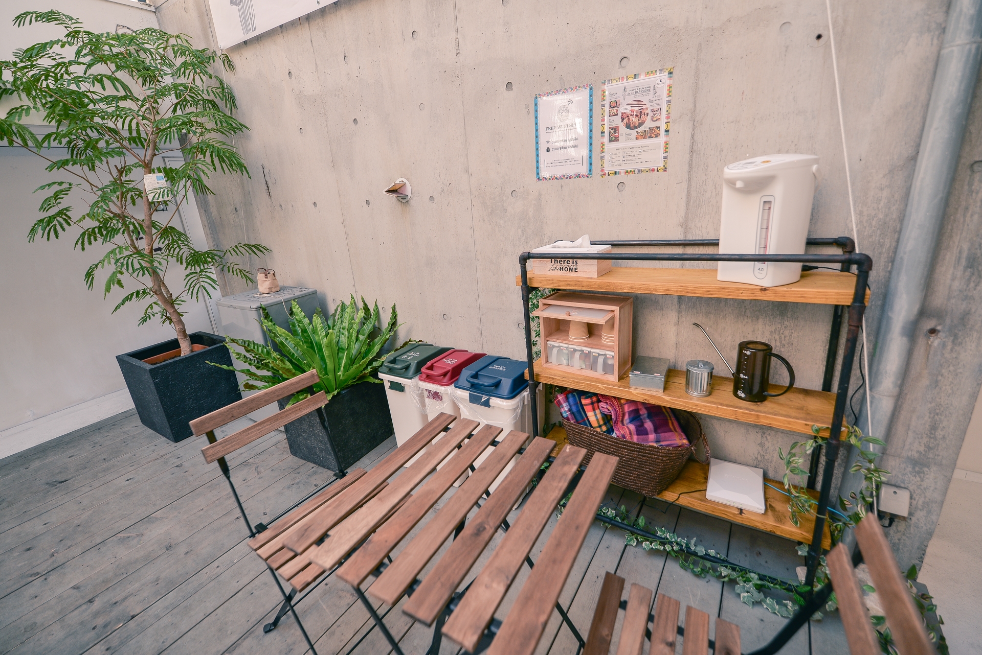 另外,門口旁有一個吸煙空間跟還有吊床,感覺很舒服。