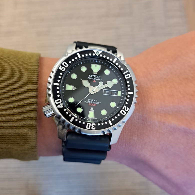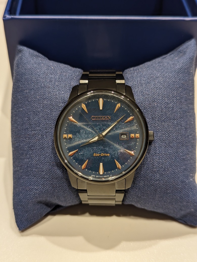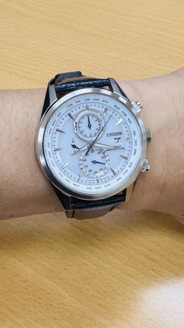 時隔十年 在同一家店買了第二支Citizen十年前, 剛開始上班,買了對錶跟女友一起戴。十年後,當了主管、換了工作,女友已經是老婆、女兒一歲半了。人生往下一個階段邁進為自己加油 邁向下個十年AT8285-68Z