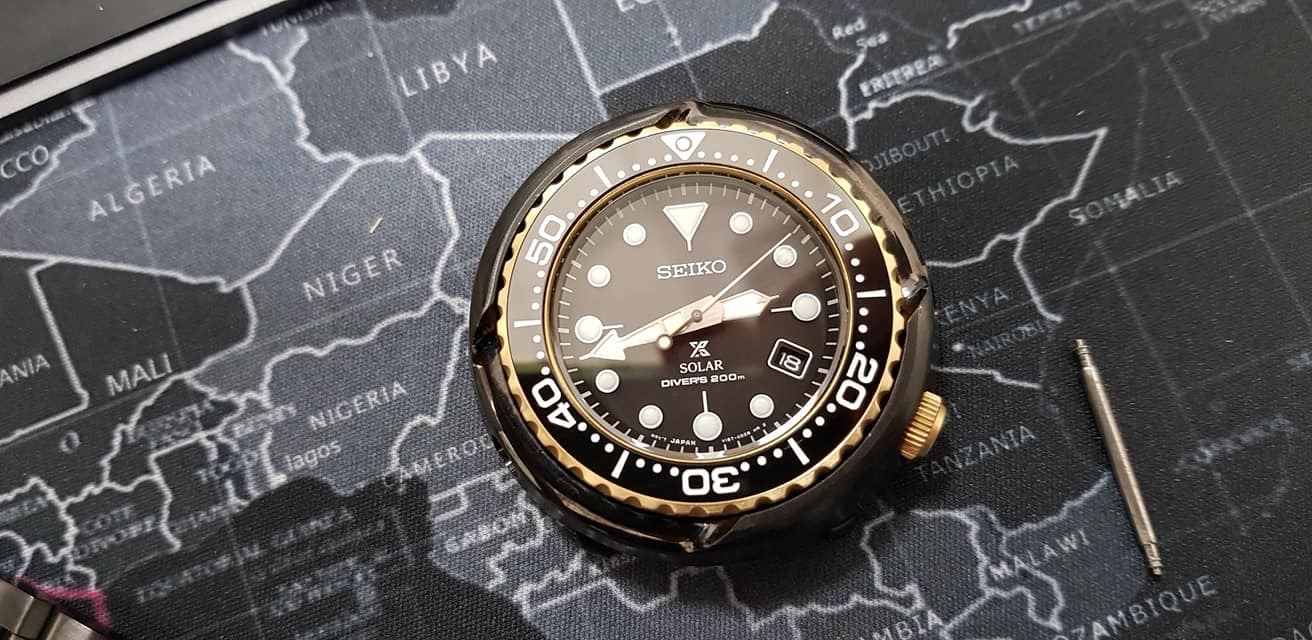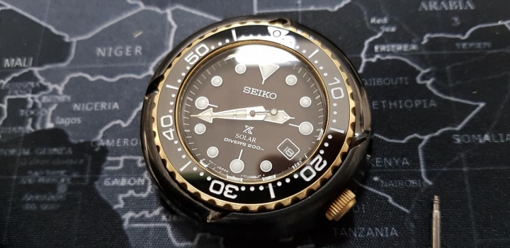 添磚蓋樓!送自己的七夕+還沒當爸的父親節禮物XD SNE498↑跟1978年初代黃金鮪有87分像,質感比照片好太多了↑螢光竟然比雷明石的H3燈管還亮,玻璃旁邊還有折射....↑右起:堂哥送的同年(1975)的5號,2000年收到的小機械(5號?),200X年買的石英,201X 年朋友從日本帶回來的雷明時,上:2019年買的潛水電腦錶Crest CR-4