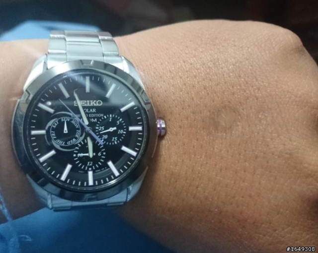 人生第一支SEIKO光動能手錶....手機拍的~畫質不好~請見諒.....聽說是限量..上面也有限量的專屬limited edition字樣...時針.秒針.還有時刻~~都是紫色~~連錶冠都有一圈紫色~~銷魂呀....當初就是因為這紫色而買入