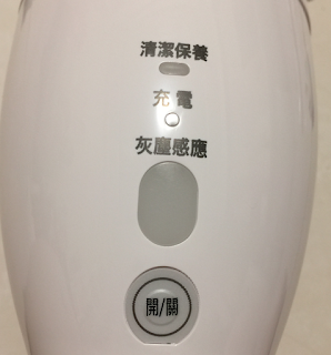 主機的正面可以看到有開關按鈕. 還有很特別的灰塵感應器. IC-SDC2 會按照不同的偵測到的灰塵量去做吸力的調整. 也就是說當看到紅燈的時候, 表示在吸的物件灰塵量較大所以馬轉更快. 而當綠色時表示灰塵量較小馬達會變慢. 因此使用者就可以知道那些地方還沒有乾淨或者特別髒需要特別的打掃. 它是動態偵測的因此它會自動動態調整吸力. 這樣子在使用的過程時,一方面可以省電增加電池續航力, 另一方面可增加清掃過程舒適度. 馬達在沒有運作很快時, 噪音值也會降低. 一個小小的灰塵感測功能將清掃過程變得很不一樣. 我認為這點是IRIS OHYAMA 做得很好的地方.