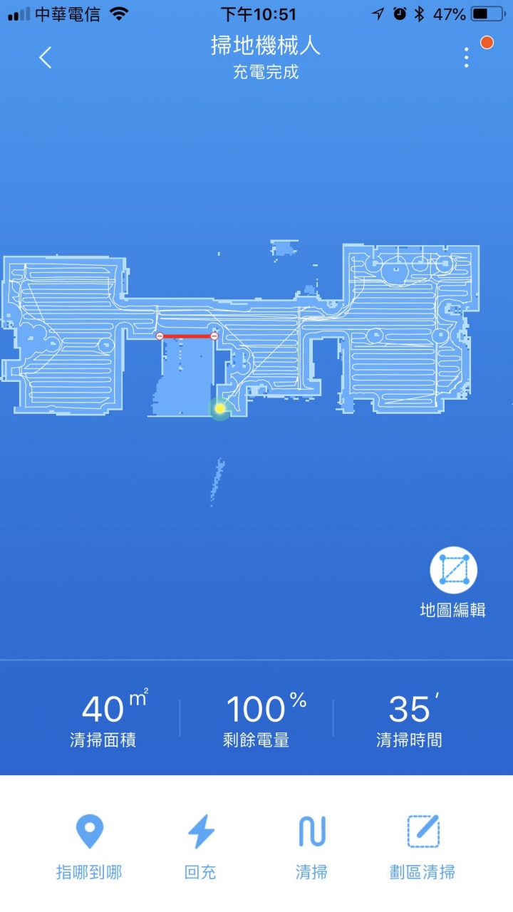 明天會更好der wrote:請問充完後繼續掃的意(恕刪) 我家的不會充完後繼續掃耶,掃完就回去充電了還是指的是掃到沒電時會先回充再掃因為我家沒那麼大,暫時沒測到這功能我是覺得掃的還蠻乾淨的原本是用米家後來買了這台後吸+拖,感覺比原本的更乾淨點前一陣子會斜走,昨天升級軔體後,又正常了