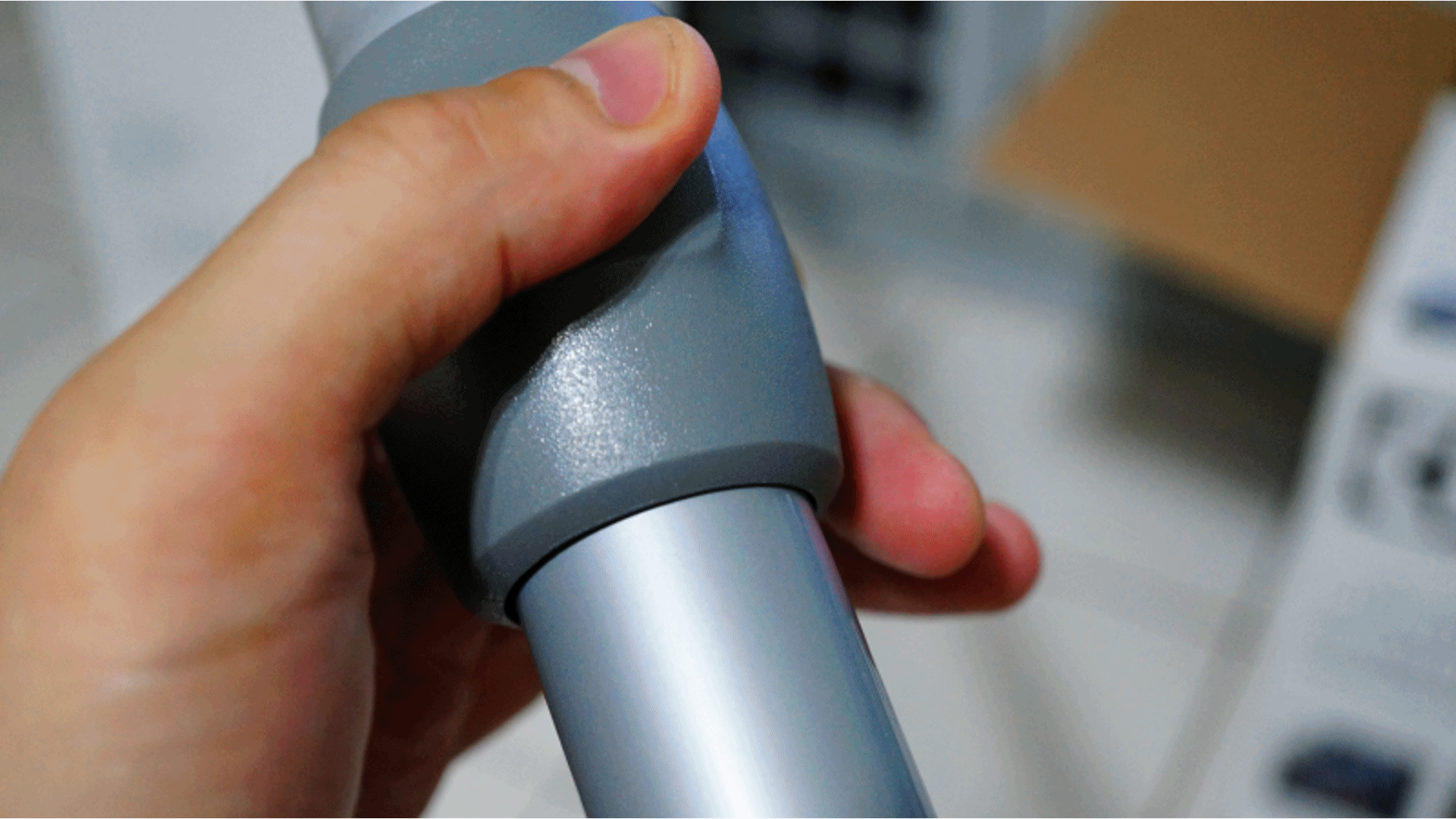 第三步,將鋁合金伸縮管與無線遙控人體工學手把接起來。