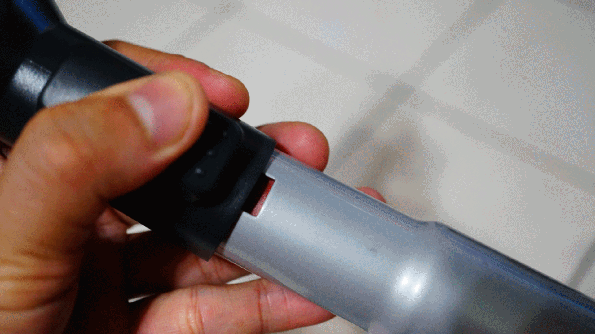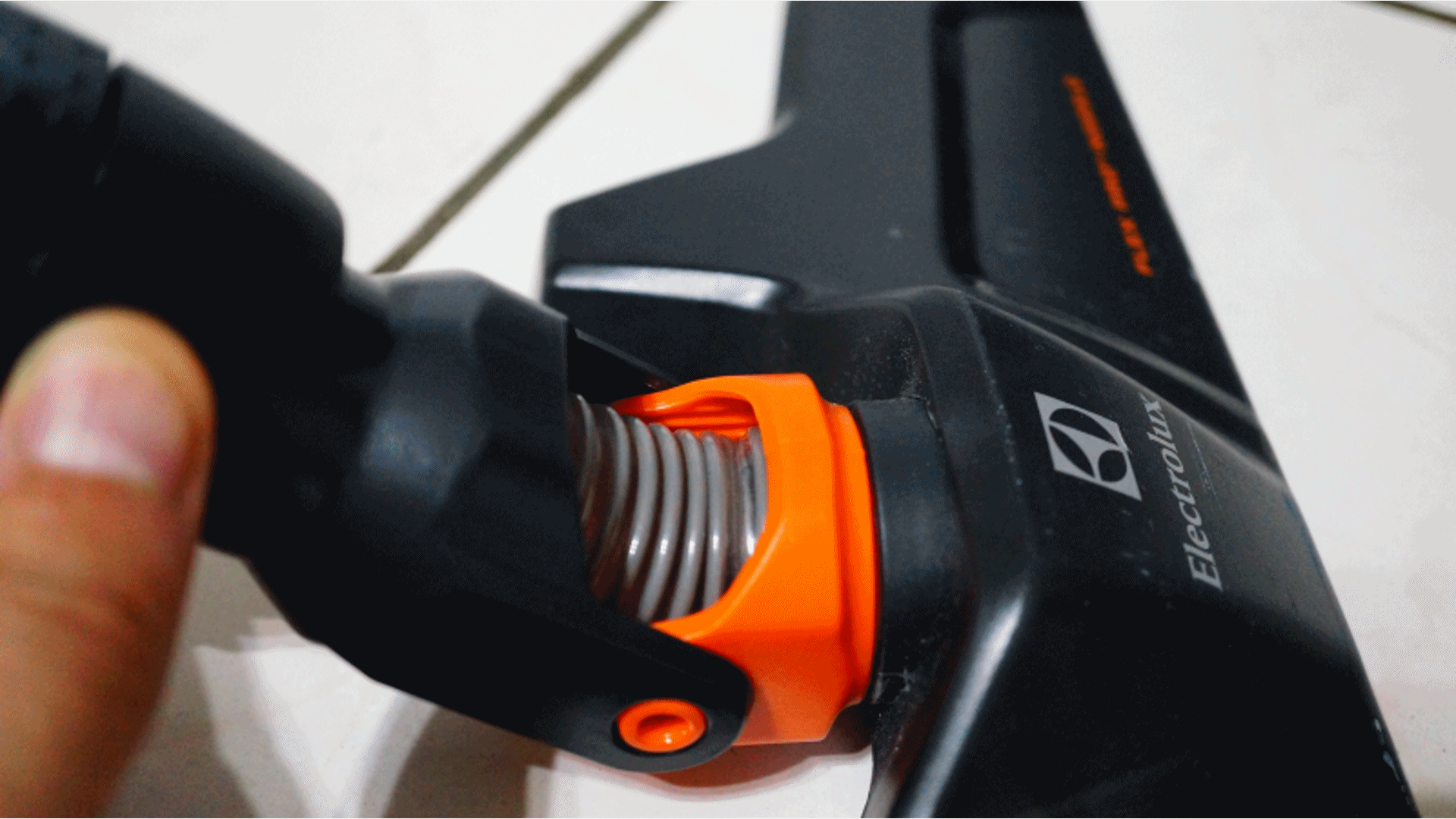 第四步,把FlexPro零死角地板吸頭與鋁合金伸縮管接起來。