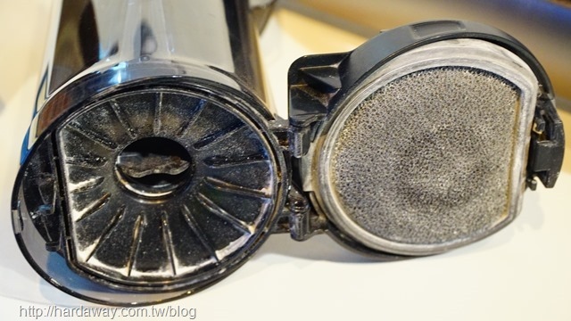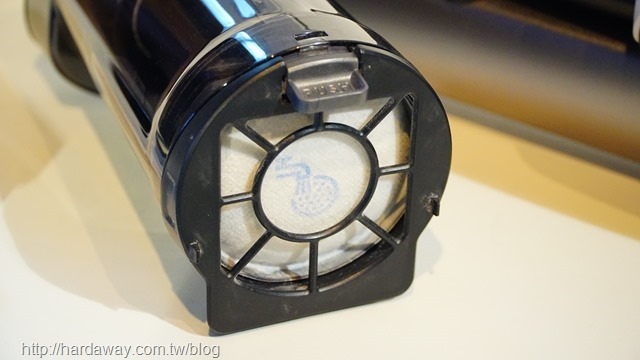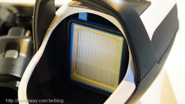 把集塵盒拆卸後,就能看到馬達前置的HEPA保護濾網。