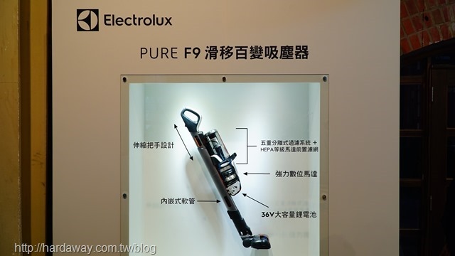 透過Joyce的介紹,再來看伊萊克斯Pure F9滑移百變吸塵器靜態展示,然後再到實機使用體驗區去體驗使用情況,整個就更有感覺了。