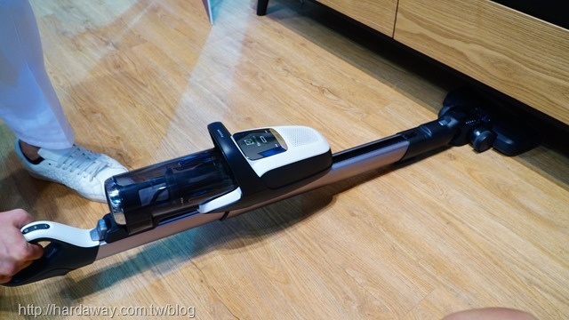 體驗會這天,在現場第一次看到伊萊克斯Pure F9滑移百變吸塵器的印象,是對它把手有36公分伸縮彈性,使Pure F9機身高度能介於84~120公分,可以讓絕大多數使用者調整一個最適合自己使用的高度。