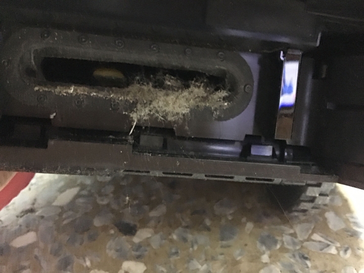 我的掃地機都能正常運作,應該是沒有故障,現在問題就是掃出來的灰塵量一多就會堆積在刷子到集塵盒之間的通道口,集塵盒又沒填滿,裡面還有很多空間,但那陀灰塵及毛髮就是進不去集塵盒,我觀察一下這款掃地機的結構,我猜是因為它裡面那個吸塵的風扇沒有設計排風口,導致垃圾無法完全被帶到集塵盒,垃圾量一多就會堆積在那個通道口。