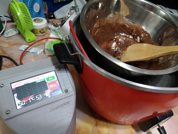 半夜睡不著來做一下生巧克力..舒肥機拿來做生巧克力也很方便的,定50度,調溫巧克力:鮮奶油 2:1混合完整冷藏後切開灑上無糖可可粉就完成了只是全程要在冷氣房完成..因為生巧克力高於18度C就會閞始變軟溶化..