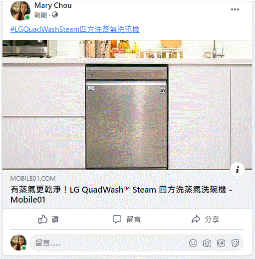 最愛的特色為上中下三組洗臂,主洗臂為十字型 QuadWash™ 超廣角螺旋洗臂,打造無死角洗滌效果,以往洗碗方式都是拿著菜瓜布或海綿在碗盤內不斷的死搓,有了LG QuadWash™ Steam 四方洗蒸氣洗碗機不但可以輕鬆洗滌,而且還徹底潔淨,這不買不行啊