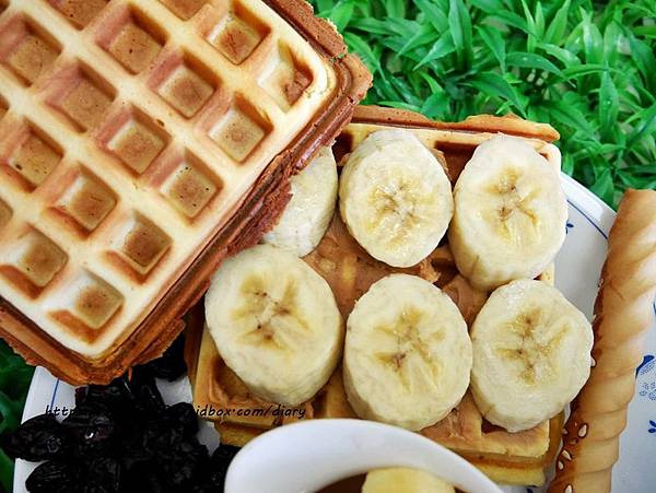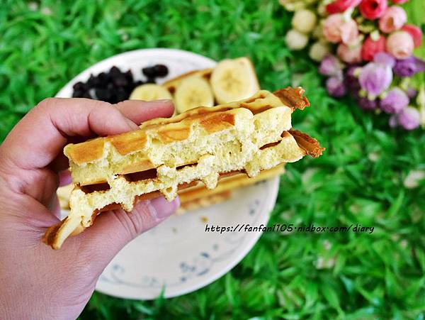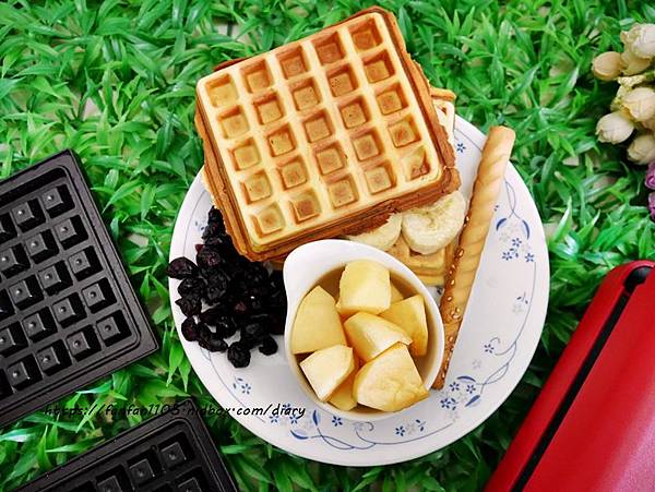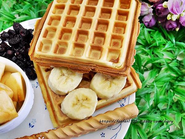 烤好的鬆餅可擺上喜歡的水果和果乾,