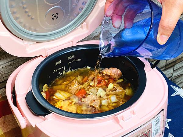 接著將所有食材通通放進電鍋中,