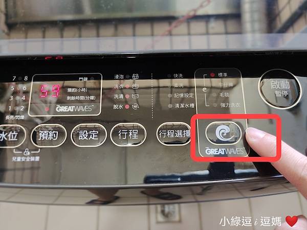 按下"GREATWAVES",洗程時間顯示馬上縮短