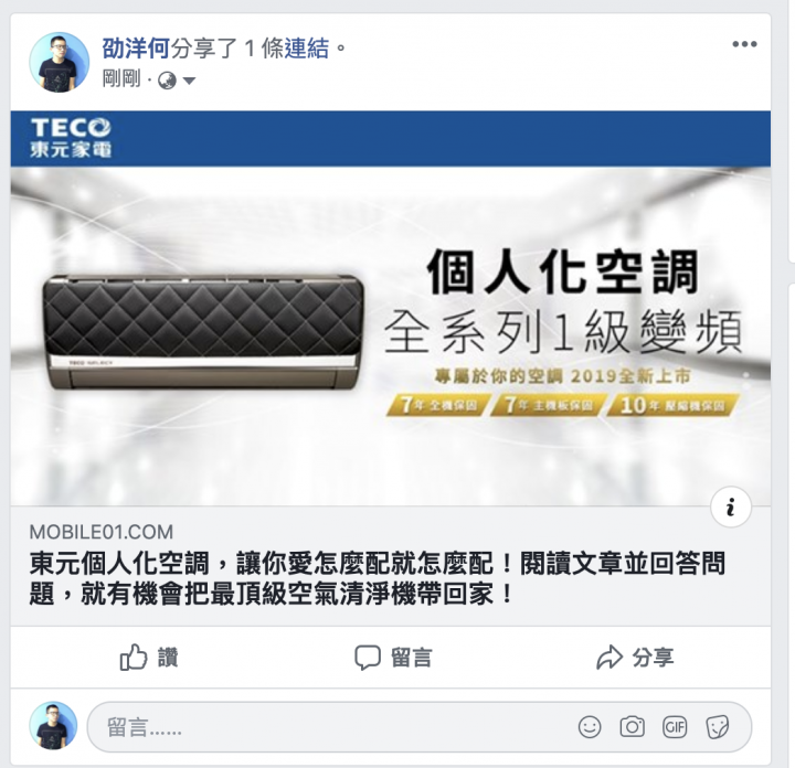 「東元個人化空調,愛怎麼配就怎麼配!我最想配皮革款,讓最時尚又多功能的冷氣陪我過一夏!」