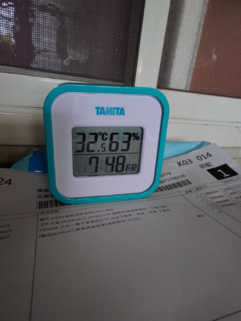 從昨天7/18,到今天7/19早上的溫度,DC電扇是一直開著的7/18晚上的溫度7/19早上的溫度有懷疑是不是壞了,拿出房間測量,剛買的應該沒那麼快壞吧?-----------------------------------大概從10年前就開始不開冷氣,有需要只開電扇睡覺已經習慣了,半夜也不會被熱醒-----------------------------------房間的冷氣型號應該是newve as-201a剛才有稍微搜尋了一下,已經找不到資料;至少20年有了,插頭已經拔掉,以免吃電。PS:中午又去查了一下,查到了,冷氣廠牌是稜威福(newave)以上供參考
